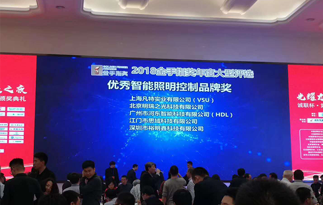 2018年我們參加了中國照明行業(yè)年度的大型評選——誠聯(lián)杯·第八屆金手指獎,榮獲“優(yōu)秀智能照明控制品牌”獎。頒獎典禮在12月22日冬至當(dāng)天盛大開幕,此次盛會以“共建照明新時代”為主題,來自行業(yè)內(nèi)外的專家學(xué)者、照明設(shè)計師、企業(yè)及媒體代表等800多人齊聚一堂,共同見證榮獲嘉獎的榮譽(yù)時刻。