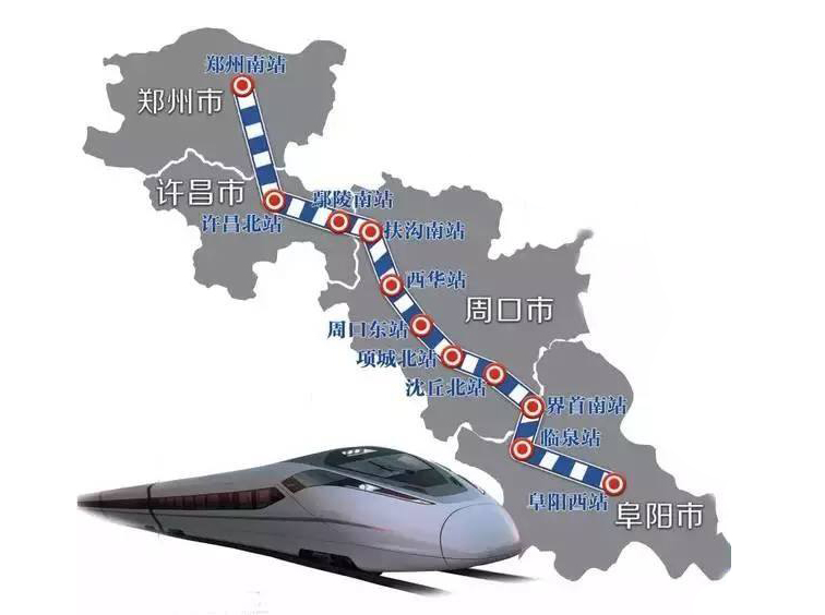 鄭阜鐵路北起鄭州南站,經(jīng)河南鄭州、開(kāi)封、許昌、周口,進(jìn)入安徽省阜陽(yáng),接入商合杭鐵路阜陽(yáng)西站,線路全長(zhǎng)267公里,工程總投資約427.2億元,其中安徽段長(zhǎng)65公里,投資140億元,設(shè)計(jì)行車(chē)時(shí)速350公里。全線設(shè)鄭州南、許昌北、鄢陵南、扶溝南、西華、周口東、淮陽(yáng)、沈丘北、界首南、臨泉、阜陽(yáng)西等11座車(chē)站。鄭阜高鐵計(jì)劃今年8月開(kāi)始聯(lián)調(diào)聯(lián)試,年內(nèi)建成通車(chē),并與商合杭鐵路銜接,延伸到杭州。屆時(shí)鄭州到阜陽(yáng)僅需1個(gè)多小時(shí),鄭州到合肥僅需兩個(gè)多小時(shí),到杭州也僅需3個(gè)多小時(shí)。