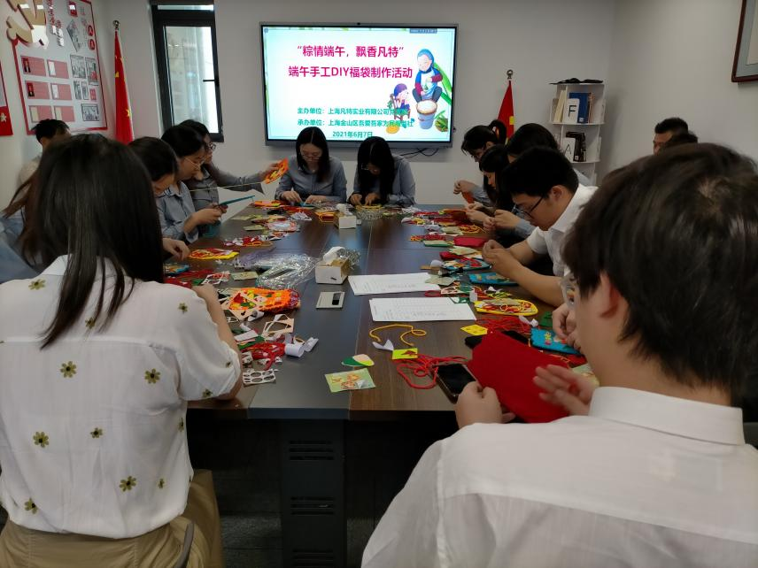 6月7日中午,由上海凡特實(shí)業(yè)有限公司黨支部主辦,上海金山區(qū)吾愛吾家為民服務(wù)社承辦的“粽情端午,飄香凡特”端午手工福袋制作活動(dòng)在凡特公司會(huì)議室舉行,凡特公司黨政領(lǐng)導(dǎo)與全體員工參加了活動(dòng)?;顒?dòng)開始,在服務(wù)社章老師的指導(dǎo)下,每位員工根據(jù)自己的想象,創(chuàng)意進(jìn)行了端午手工福袋的制作。經(jīng)過1個(gè)小時(shí)的活動(dòng),一個(gè)個(gè)精致的別具特色的福袋制作成功,你看,他們背著自己制作的福袋,享受著成功的喜悅。同時(shí)吾愛吾家為民服務(wù)社還給凡特公司員工送來了自己包的粽子,提前祝凡特公司員工端午節(jié)快樂。