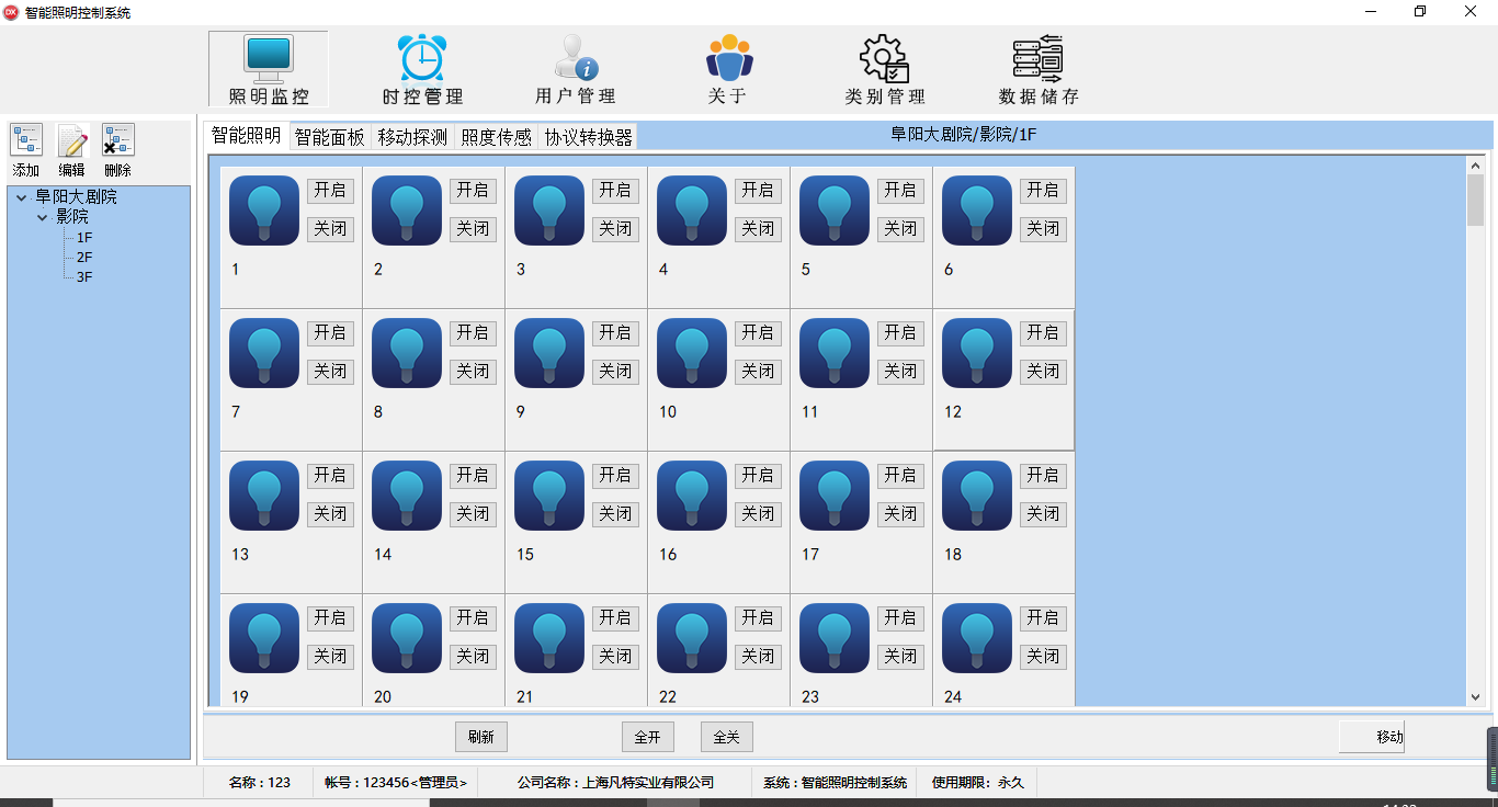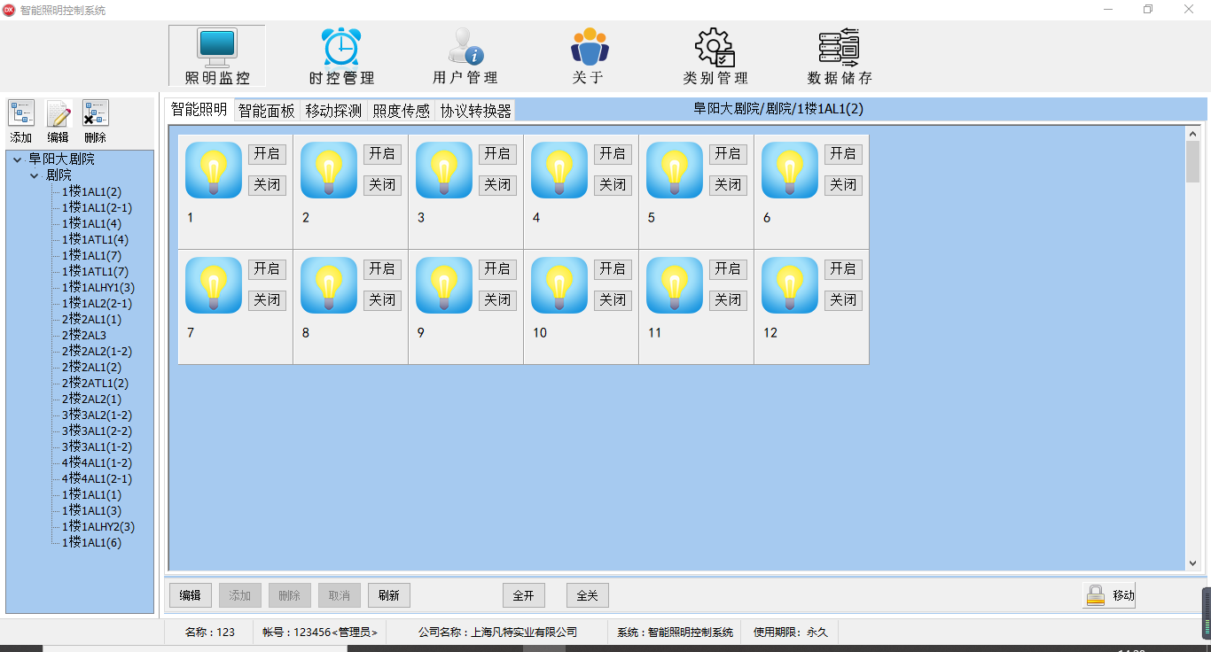 智能照明控制系統(tǒng)可在管理中心通過電腦遠(yuǎn)程控制整個劇場的燈光,實現(xiàn)一鍵全開、全關(guān),亦可控制每個回路的開關(guān),預(yù)設(shè)上、下班時間自動開啟、關(guān)閉整個場地的燈光,避免漏關(guān)、錯關(guān)等現(xiàn)象,不同場館功能廳都有其專屬的控制方式。例如:阜陽圖書館的藏書區(qū)域出入頻繁,但不必常亮的區(qū)域,采用紅外感應(yīng)控制,可實現(xiàn)人到燈亮,人走燈延時熄滅的效果,既能最大限度節(jié)約能源,又能保證照明需求;閱覽室則通過照度控制和定時控制,光照傳感器根據(jù)室外環(huán)境光照調(diào)光,保證合適的閱讀照度,同時節(jié)約能源。阜陽大劇院多功能廳表演區(qū)域主要采用調(diào)光控制、場景控制,通過實現(xiàn)場景的預(yù)設(shè)置和記憶功能,只需操作控制面板即可開啟一個燈光場景,各照明回路隨即能自動變換到相應(yīng)的狀態(tài),通過調(diào)光在不同表演需求中產(chǎn)生不同的燈光效果,營造最舒適的觀感效果。