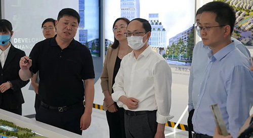 吳能武一行人首先參觀了上海灣區(qū)科創(chuàng)中心展廳,灣區(qū)科創(chuàng)公司負責人就科創(chuàng)中心的總體規(guī)劃、未來城市設(shè)計以及院校合作等板塊進行了詳細介紹。