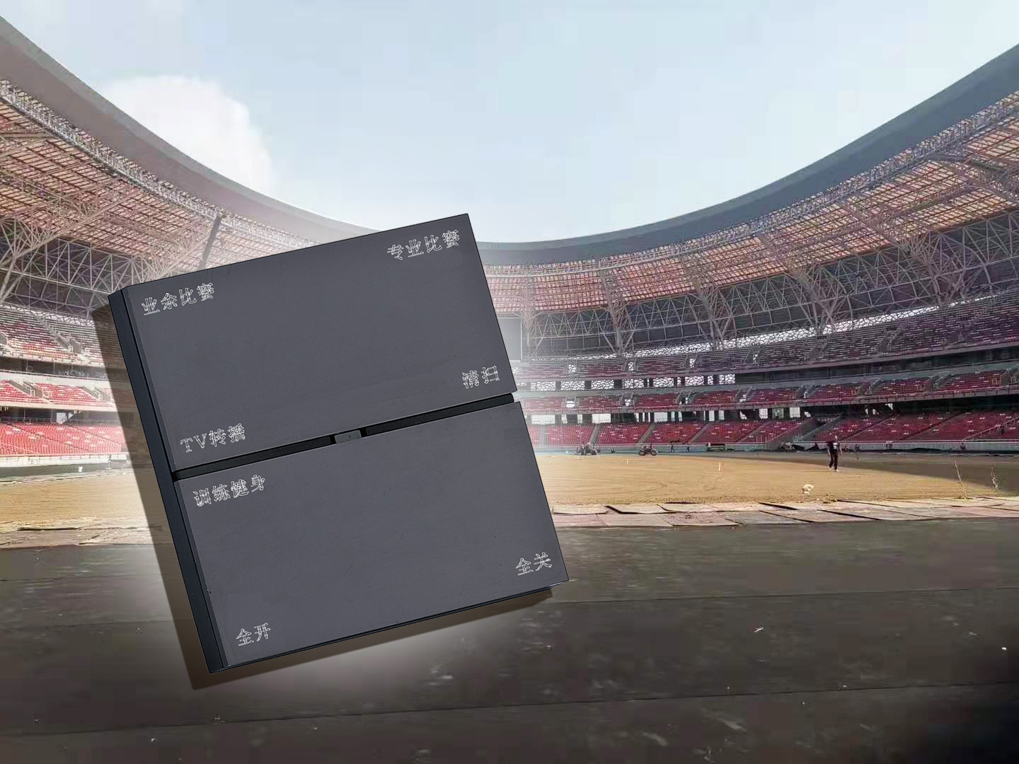VSU智能照明為山西體育中心安裝燈光控制系統(tǒng),通過面板切換專業(yè)比賽模式、業(yè)余比賽模式、TV轉(zhuǎn)播模式、清掃模式、訓(xùn)練和健身模式、全開和全關(guān)模式等不同的燈光場景。燈光場景切換,極大地減少了管理人員的工作量,只需根據(jù)館內(nèi)賽事的安排,可編程,一鍵切換!