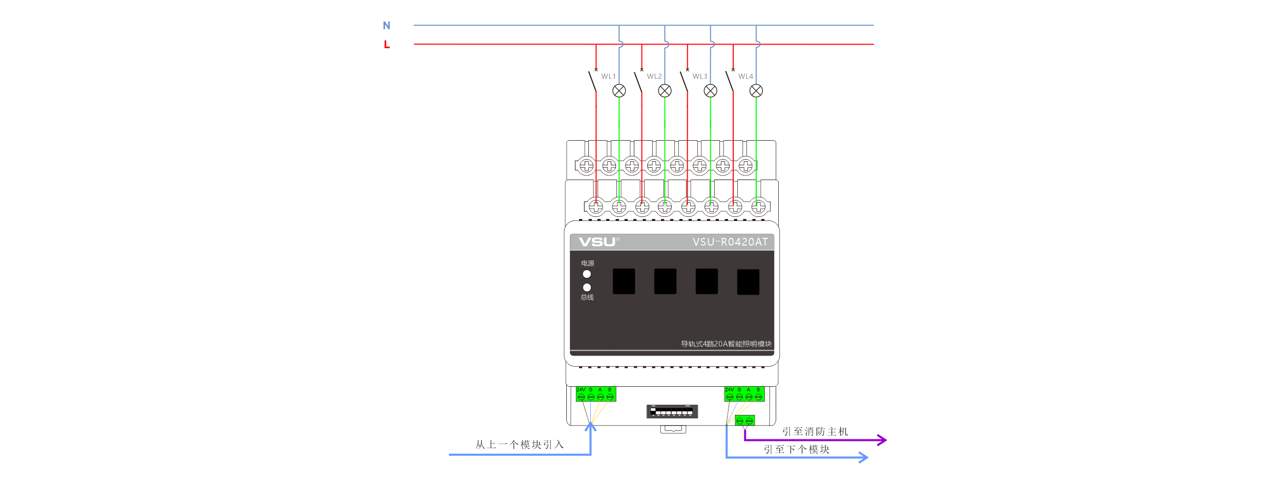 本產(chǎn)品為導(dǎo)軌式安裝,含4路智能繼電器,每回路可獨(dú)立控制4400W燈具的開關(guān),帶強(qiáng)切功能和互鎖功能。 |