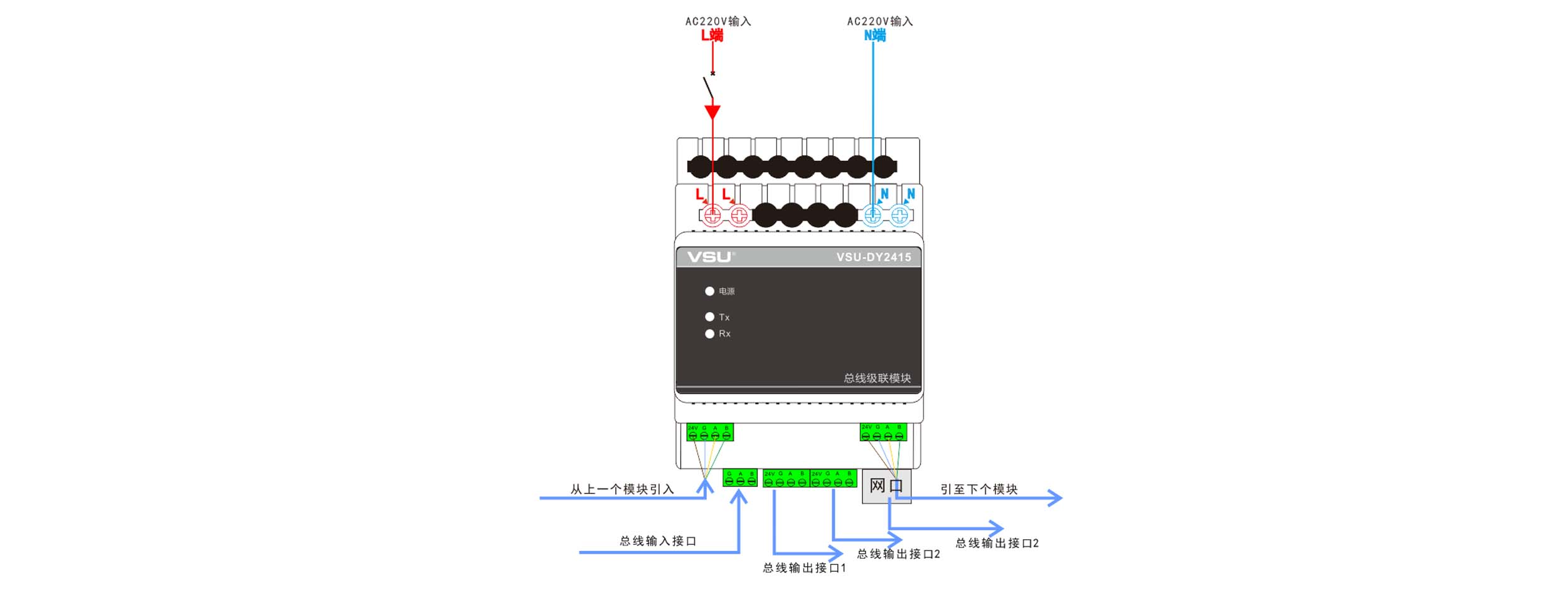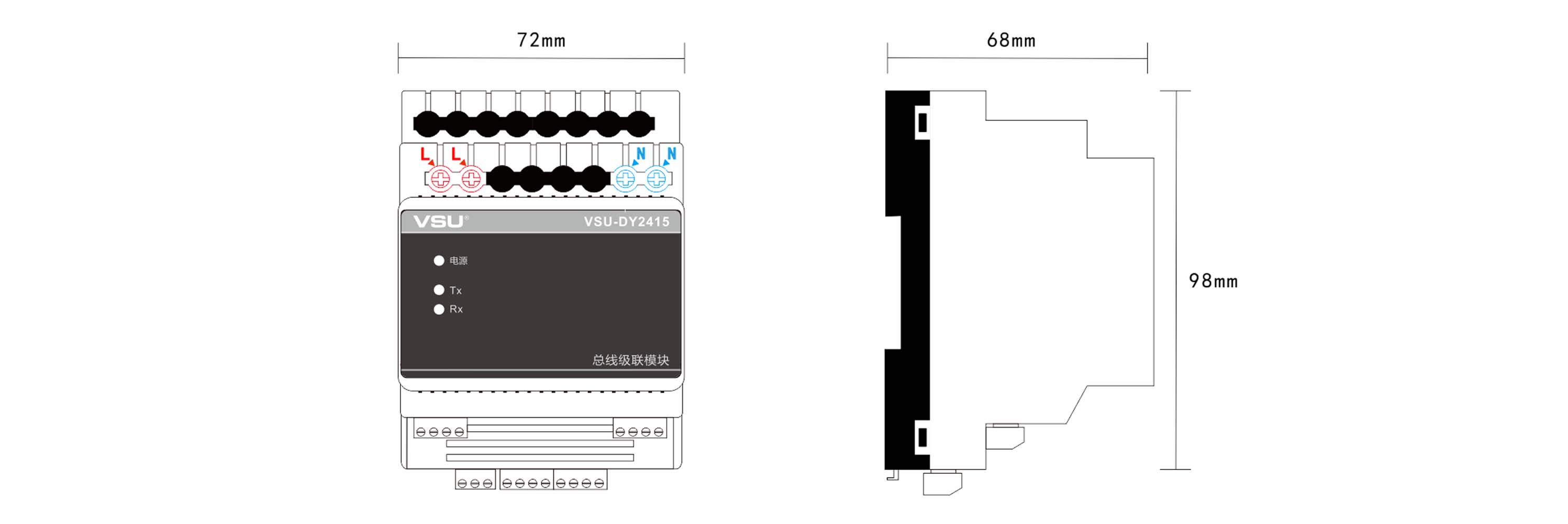 3,導(dǎo)軌式安裝,占4個(gè)模數(shù)位,符合VSU-Net總線標(biāo)準(zhǔn);